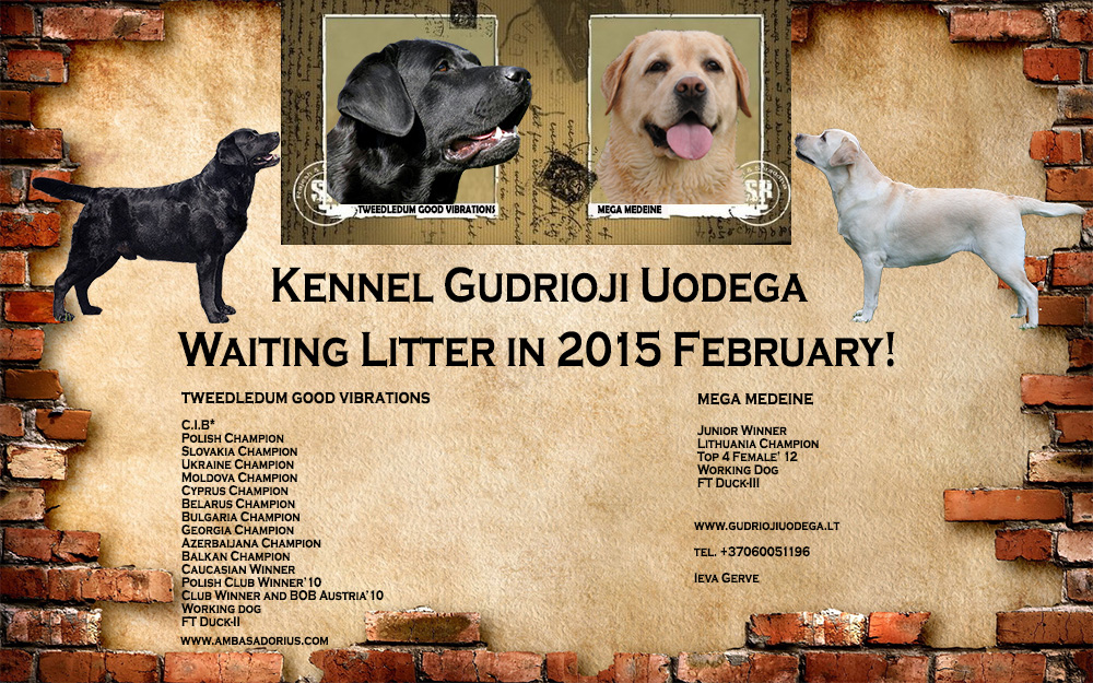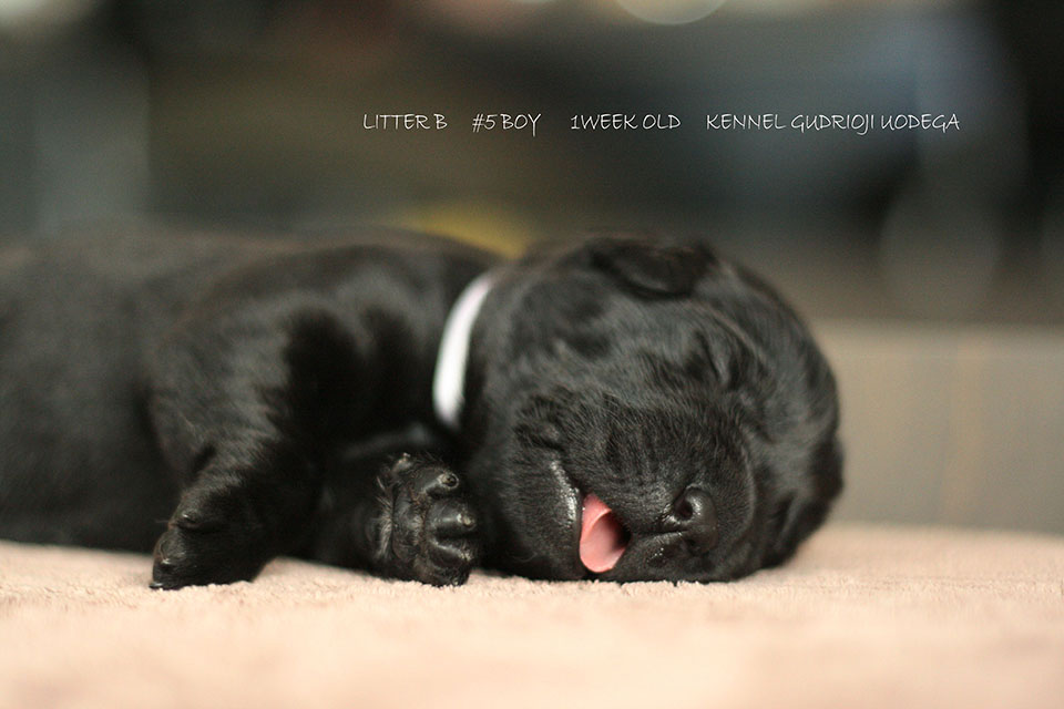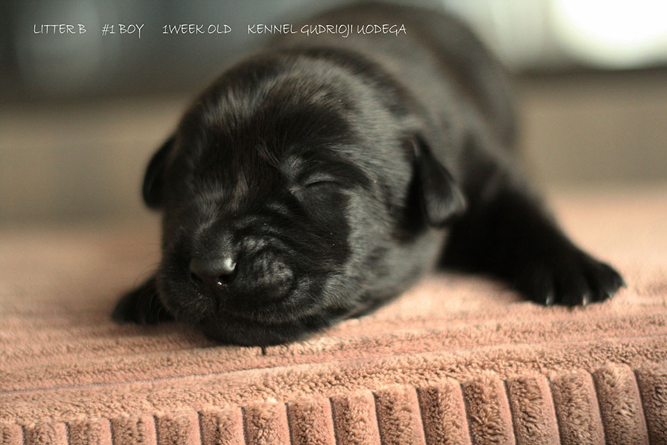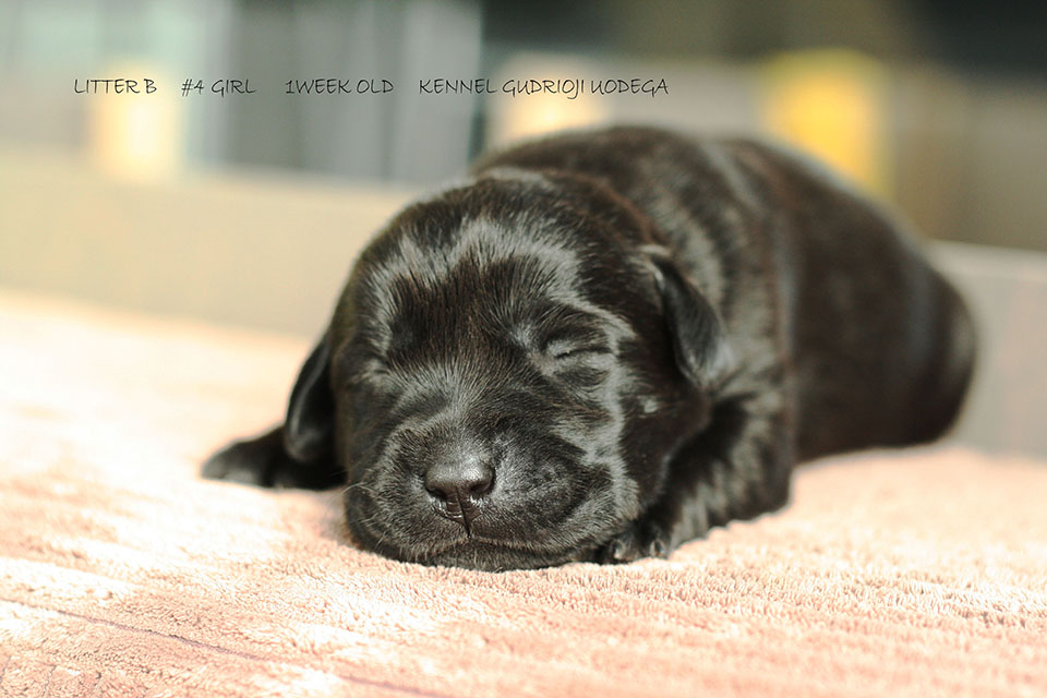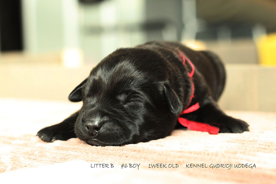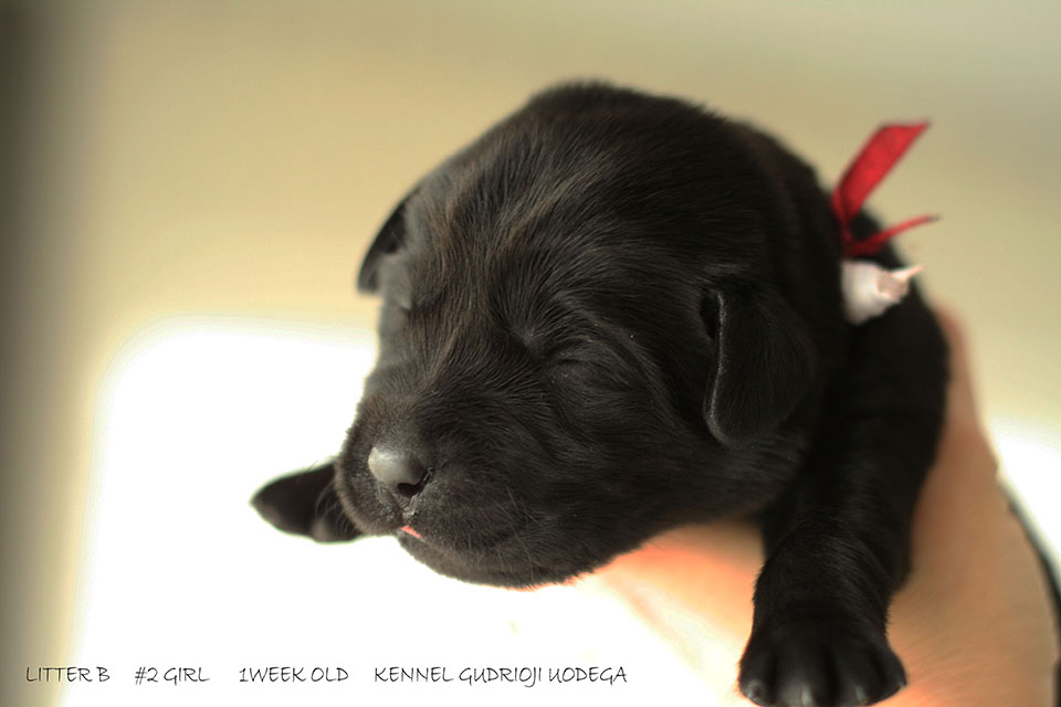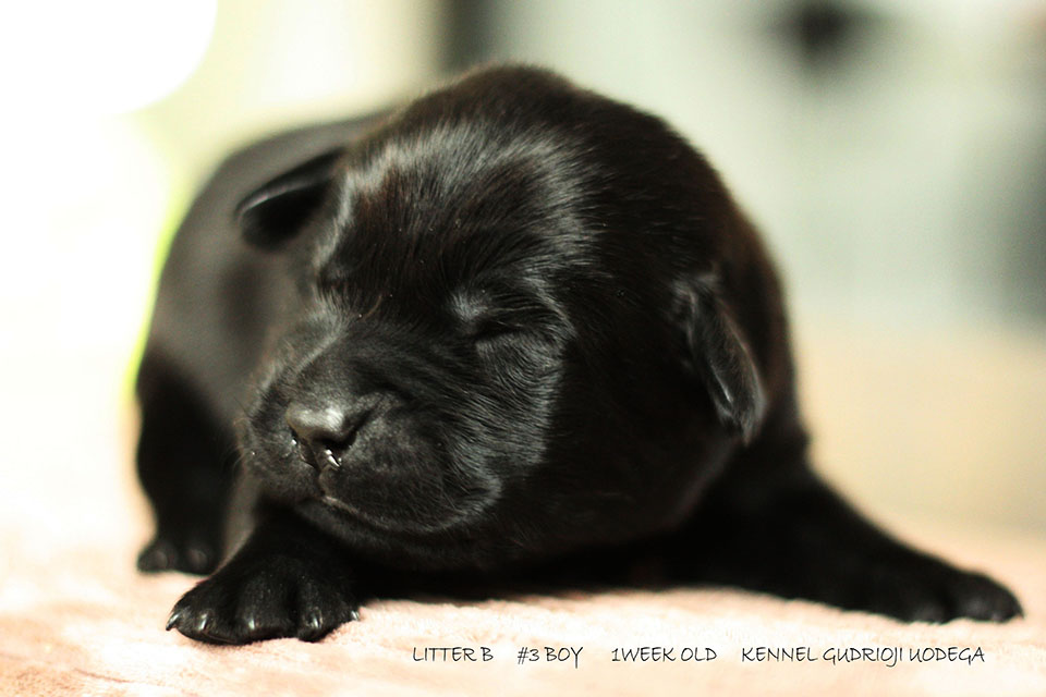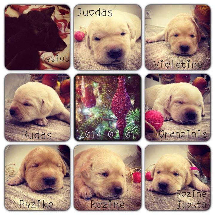 2015-02-08 saulėtą sekmadienio rytą sulaukėme 6 juodų mažylių, 4 berniukų ir 2 mergyčių. Mažieji veislyno džiaugsmeliai auga puikiai ir pirmą kartą, būdami savaitės amžiaus prisistato jums.